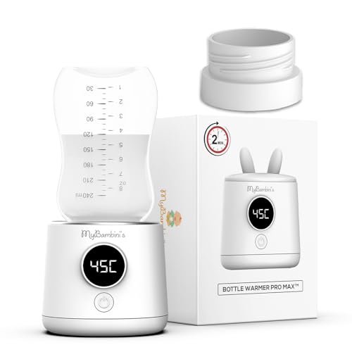 MyBambinis MAX™ bärbar flaskvärmare baby, flaskvärmare babyresor, bröstmjölkvärmare baby, USB-flaskvärmare, för bil, flygplan kompatibel med MAM, LANSINOH och NANOBEBE (bred)