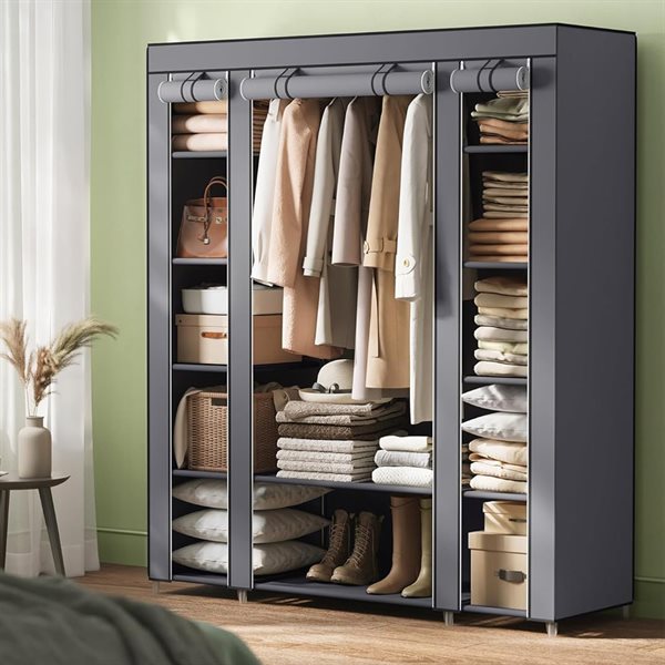 HESMENO Bärbar garderob, bärbar garderob för att hänga kläder, garderob med fem hängande stavar, icke-vävt tygskydd, grå