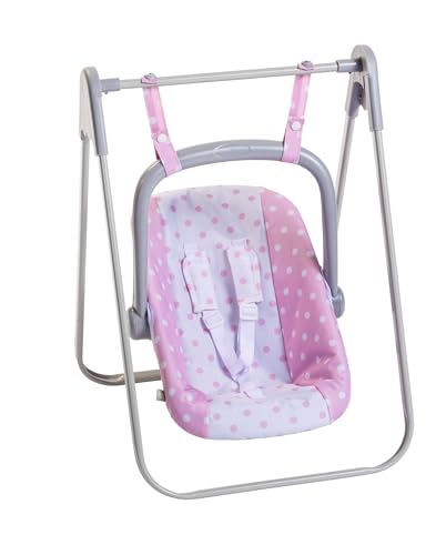 JC Toys - 2-i-1 hängmatta och stol i flera lägen avtagbar för handleder upp till 45 cm, rosa och vit med prickar, bärbar, lätt vikt, designad av Berenguer Boutique, + 3 år