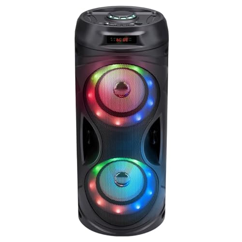 MusicMan Bärbar Bluetooth-högtalare BT-X66 med RGB Disco-ljus, FM-radio, USB & MicroSD-uppspelning, 1800mAh batteri, inbyggd mikrofon & AUX-ingång – Trådlös festhögtalare för resor, hem, utomhus, etc.