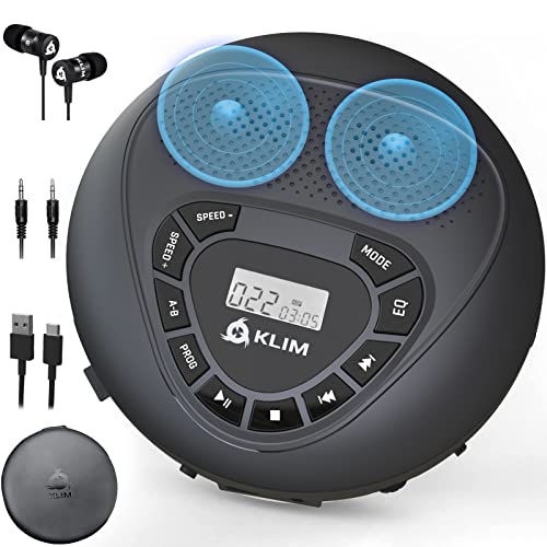 KLIM Speaker + NY 2024 Bärbar CD-Spelare Med Högtalare, Hörlurar Och Uppladdningsbart Batteri - För Barn/Vuxna - SD/TF-Kort, AUX, Bil-Kompatibel
