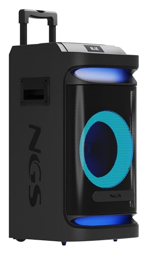 NGS Wild Space 1 bärbar högtalare kompatibel med Bluetooth och True Wireless Stereo, subwoofer + dubbel tweeter (Micro SD/USB/AUX IN/), hjul, svart färg