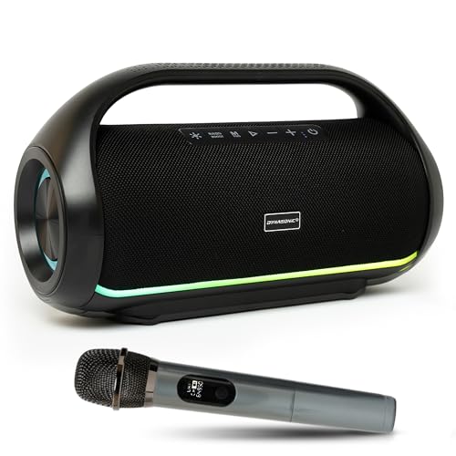 DYNASONIC - Karaoke med 2 mikrofoner, bärbar karaokemaskin. Bluetooth-högtalare med ljus. USB och SD-läsare - present till pojkar och flickor i åldrarna 5 till 13 år (modell 19)