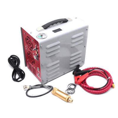 GX PUMP GX-E-CS3 bärbar PCP-kompressor, automatiskt stopp, 4 500 Psi/30 MPa/300 bar, oljefri, med vattenoljefilter, drivs av 12 V DC-bilbatteri eller hem 220 V AC, scuba luftkompressor