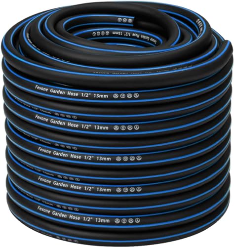 Fevone Trädgårdsslang 50 m slangrör för trädgård 13 mm (1/2 tum) 4 ly 25 bar hög belastning bärbar utomhus kompressor slangledning flexibel robust spännbart böjskydd svart/blå
