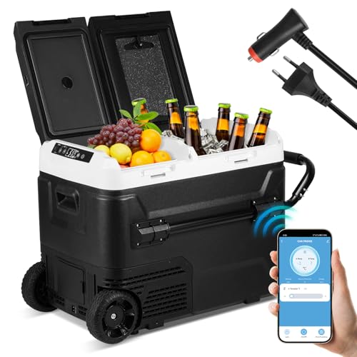 Hebitod kompressor kylbox 50 l, elektrisk fryslåda, två zoner och dubbeldörrar, kylbox 12 V/24 V till -20 °C med Bluetooth-kontroll, anti-shake, bärbar, för camping, resemobil