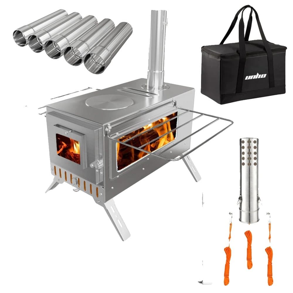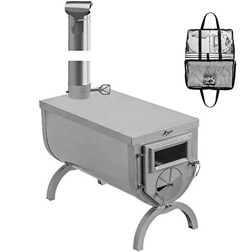 YilwnnCse Bärbar Vedeldad Campingspis,Tältkamin,Rostfritt Stål Utomhus Spis,Fristående Skorsten i Rostfritt Stål,Rostfritt Stål Material