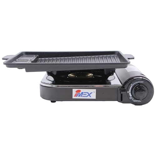 IMEX JYP-300E bärbar campingutrustning spis gas grill bärbart grillset 5-delat set med grillbricka, tång, kniv och bärväska, rostfritt stål Piezotändning