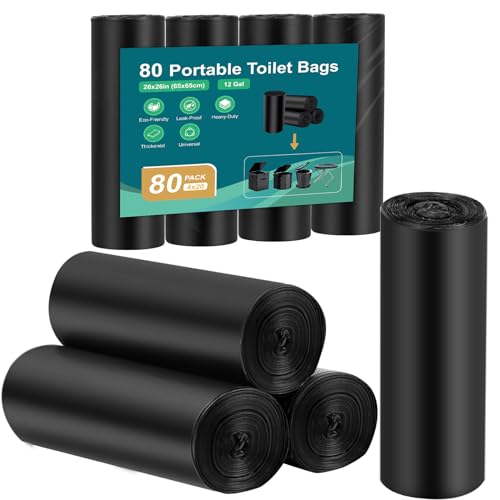 WADEO 80 st toalettpåsar svart, camping toalettpåsar 50L, bärbara toalett tillbehör avfallspåsar extra tjocka (0,03 mm) - perfekt för camping, vandring, resor