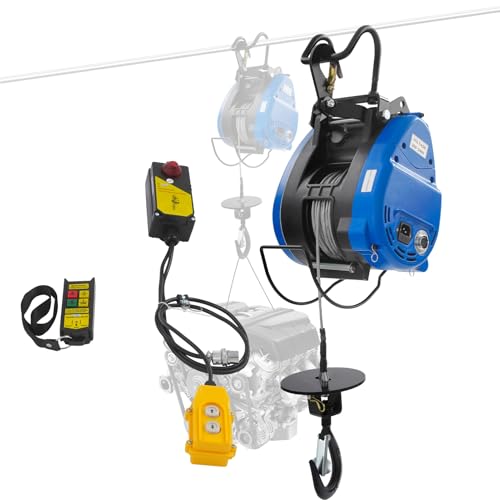 VEVOR 2 i 1 elektrisk hiss bärbar elektrisk vinsch 498,95 kg lyftvinsch 1 500 W lyfthöjd 7 m lyfthastighet 4 m/min trådbunden fjärrkontroll för garage lager fabrik bogsering