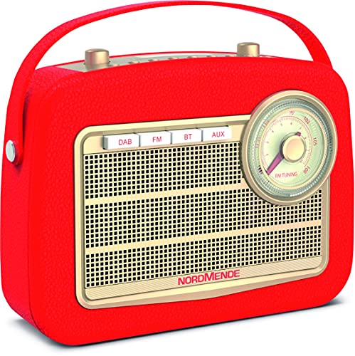 Nordmende Transita 130 - portabelt DAB+/FM retro radio med FM-frekvensregulator (Bluetooth-ljudströmning, USB, dot-matrix LC-display, batteri upp till 24 timmar, bärhandtag, konstläderhölje) röd