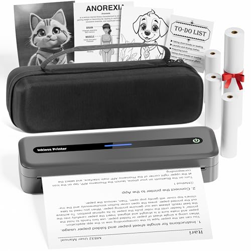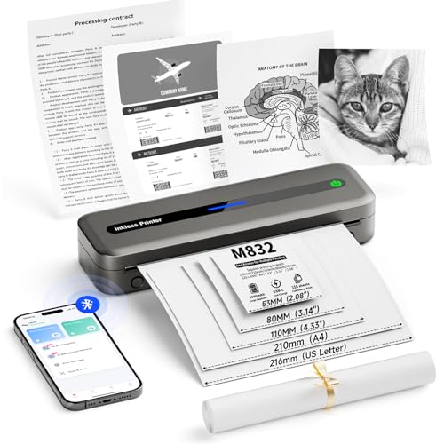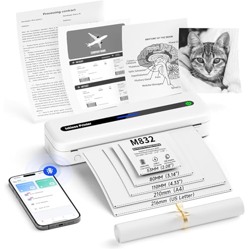 Itari Bluetooth mobil skrivare, termoskrivare A4 Inkless Portable Printer – ny uppgradering 300DPI skrivare liten för mobiltelefon