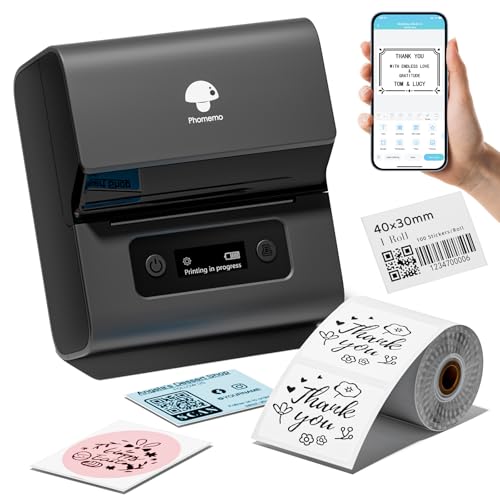 Phomemo M221 Portable Label Maker - Streckkodskrivare Bluetooth Thermal Label Printer, Label Maker för småföretag, QR-kod, logotyper, smycken, detaljhandel, kompatibel med telefoner och PC-system,Grå