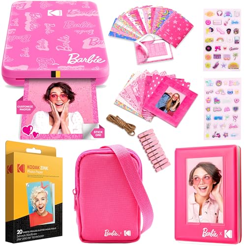 KODAK x Barbie Step Slim Wireless Instant Portable Photo Mobile Printer Gift Bundle (Signature Style)+ Barbie Camera Case, Photo Album, Sticker & Hanging Frames, 50 Stickers + Zink Paper (20 Sheets)