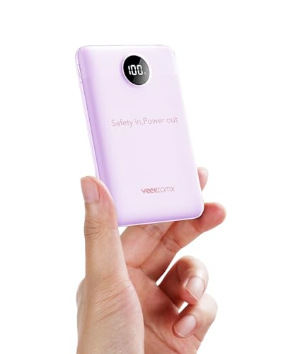 VEEKTOMX Mini Power Bank 10000mAh 22.5W Portable Charger USB C PD Quick Charge 3.0 Kompakt bärbar laddare med 2 snabbladdningsportar och LED-display (Purple)