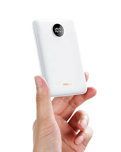 VEEKTOMX Mini Power Bank 10000mAh 22.5W Portable Charger USB C PD Quick Charge 3.0 Kompakt bärbar laddare med 2 snabbladdningsportar och LED-display (White)