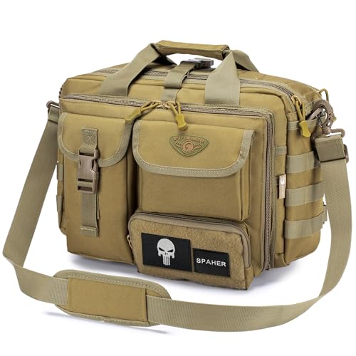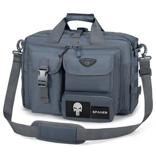 SPAHER Portfölj Herr Arbetsväska Laptopväska 15,6/17,3 Tum Business Tactical Bag Vattentät Militärväska Axelväska Arbete Dator Väska Herr Handväskor för Män Laptop Messenger Bag med Justerbar Rem