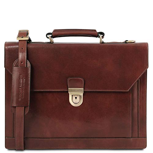 Toscana läder Cremona läder portfölj 3 fack brun, Brun