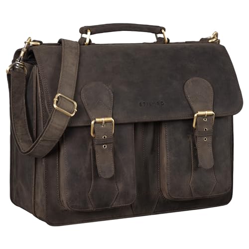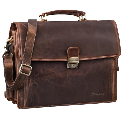 STILORD "Hector" stor businessläderväska för män vintage axelväska med 15,6 tums laptopfack läder portfölj DIN A4 i XL-format, Calais – brun, L, portfölj