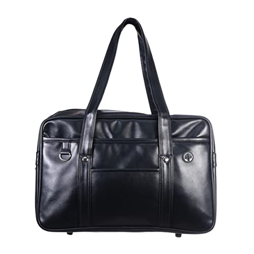 VALICLUD Bärbar pendlarväska japansk skolväska män portfölj läder tygväska affärsfodral herr portfölj bokväska för män PU datorväska cospaly uniform väska handtag väska Japan man, Svart, 40x14.5x26cm