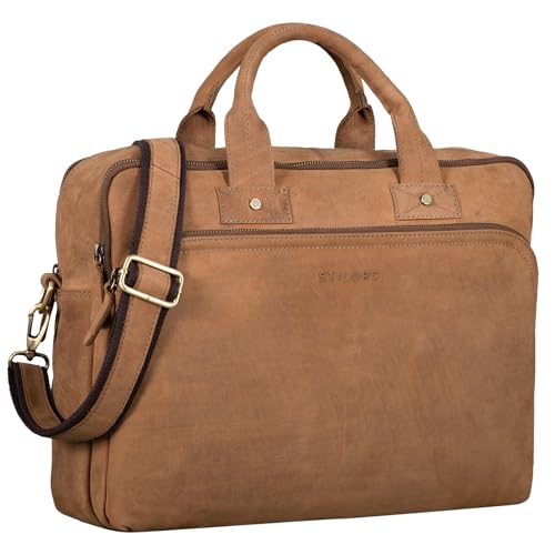 SID & VAIN laptopväska smart för vagn bagage YANN stor bärbar datorväska portfölj äkta läder 15 tum bärbar dator skolväska college lärare portfölj läderväska kvinnor och män, Ljus solbränna, Unisex-Adults, Kurirväska
