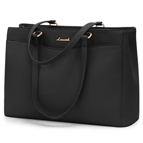 LOVEVOOK Laptopväska dam, vattentät arbetsväska handväska stor skolväska shoppingväska affärsväska portfölj lärarväska, läder bärkasse väska notebookväska för kontor universitet, Svart endast