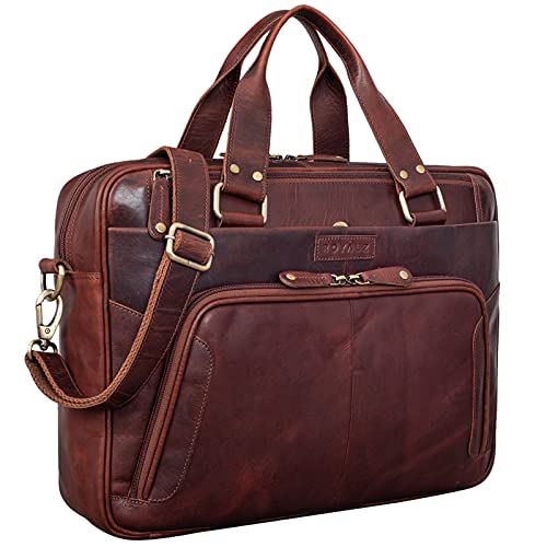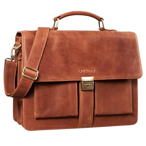 STILORD "Jeffrey" Lärare portfölj läder vintage axelväska stor portfölj för 15,6 tums bärbar dator affärsväska för professor skola arbetsvagn, Kara – Cognac, XL, Portfölj