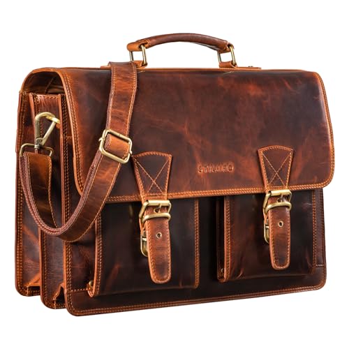 KomalC 40 cm (16 tum) buffalo läder portfölj laptop messengerväska kontor portfölj högskola väska för män och kvinnor, Distressedsolbränd, M, vintage