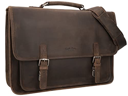 Gusti Portfölj Läder - Elmar Affärsväska för Dam och Herr, Mässangerväska, Laptopväska, Vintage A4 Dokumentväska, Brun, Einheitsgröße