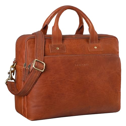 STILORD "Alex" vintage läderväska män kvinnor affärsväska att hänga upp 15,6 tum laptopväska portfölj univäska axelväska läder, Cognac – brun, L, Axelväska