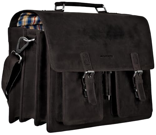 Marc Peter Amsterdam portfölj läder XL lärarväska med laptopfack 15,6 tum stor läderväska för upphängning vagn påknäppbar, Kolgrå, Amsterdam
