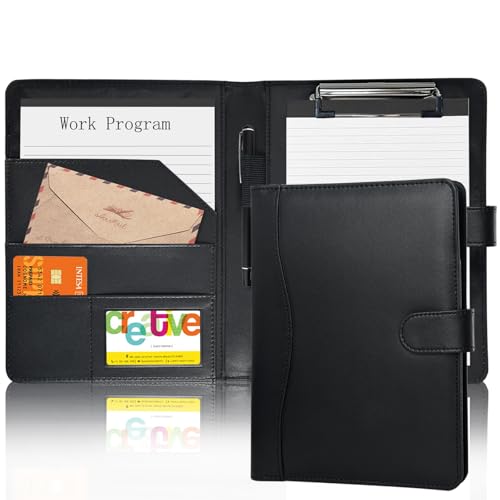 A5 Skrivmapp med klämbräda, portfölj läder arrangör A5-konferensmapp affärsmapp personligt anteckningsblock, med korthållare, pennhållare, förvaringsfack, magnetspänne (svart)