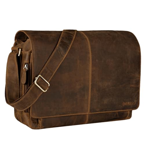 STILORD "Alex" vintage läderväska män kvinnor affärsväska att hänga upp 15,6 tum laptopväska portfölj univäska axelväska läder, Calais – brun, L, Axelväska