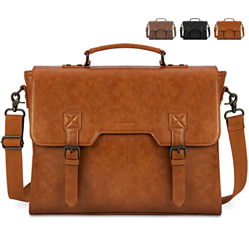 NEWHEY Laptopväska 15,6 tum kurirväska herr portfölj vattentät läder skolväska dator axelväska vintage stor arbetsväska för kontor affärer skola, Brun, vintage