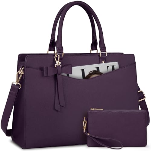 RAINSMORE Laptopväska dam 15,6 tum shoppingväska väska stor handväska med plånbok arbetsväska portfölj PU-läder lärarväska affärsväska, violett, 15,6 Zoll