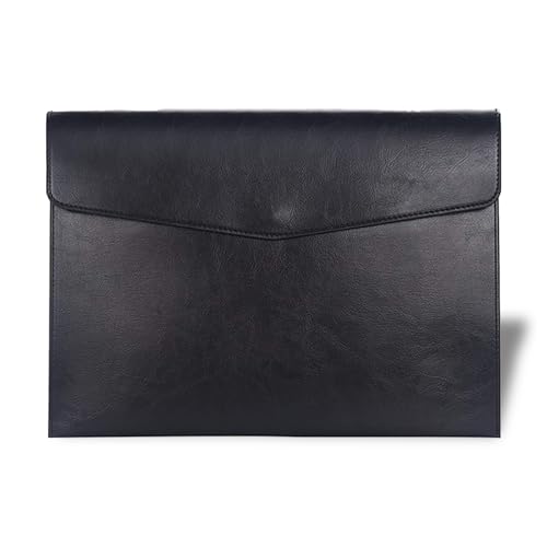 RisePlus dokumentmapp A4 läder, portfölj A4 av PU-läder, vattentät kontors- och resväska för dokument, vintagedesign med pennfodral (svart)