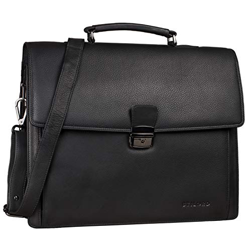 STILORD Ramon Premium Portfölj Läder Portfölj 15 tum Vintage Väska 24 Tums Portfölj Läderväska Stor för Män, Arbete, Business, Dokument A4 Färg: Svart, Svart, L