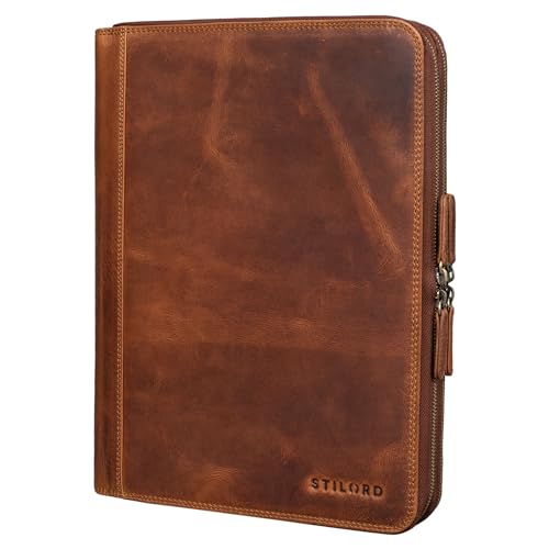 STILORD 'Cohen' A4 dokumentväska läder vintage – elegant skrivmapp med 12,2 tums surfplattefack och dragkedja – Perfekt för affärer, möten och arbete – äkta läder, Medium – brun, Medium, portfölj
