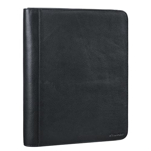 STILORD "Tate" vintage arrangör A4 läder konferensmapp äkta läder dokumentmapp med ringbok skrivmapp för surfplatta 30 cm lädermapp med dragkedja retro, Obsidian svart, L, portfölj