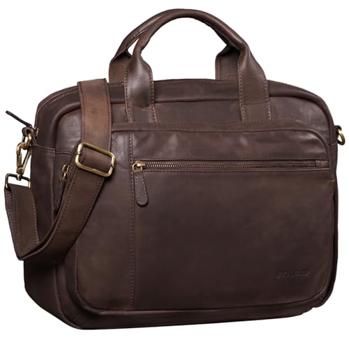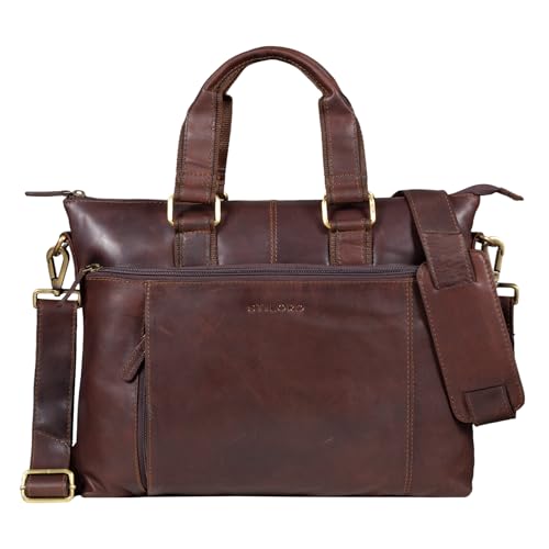STILORD "Lias" vintage 15,6 tums läderväska business laptop väska stor arbetsväska kontor enfärgat antikt läder, Brun - mörk, L, Portfölj