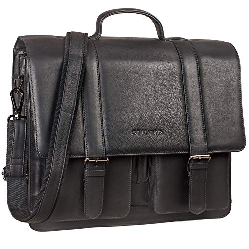 STILORD stor läderportfölj svart – vintage lärarväska – affärsväska av nötläder – skolväska – klassisk laptopväska Marius, svart, L, portfölj