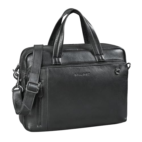STILORD "Ross" vintage laptopväska i läder 14 tum smal portfölj herr laptop väska dam arbete och resor dokumenthållare, svart, M, portföljer