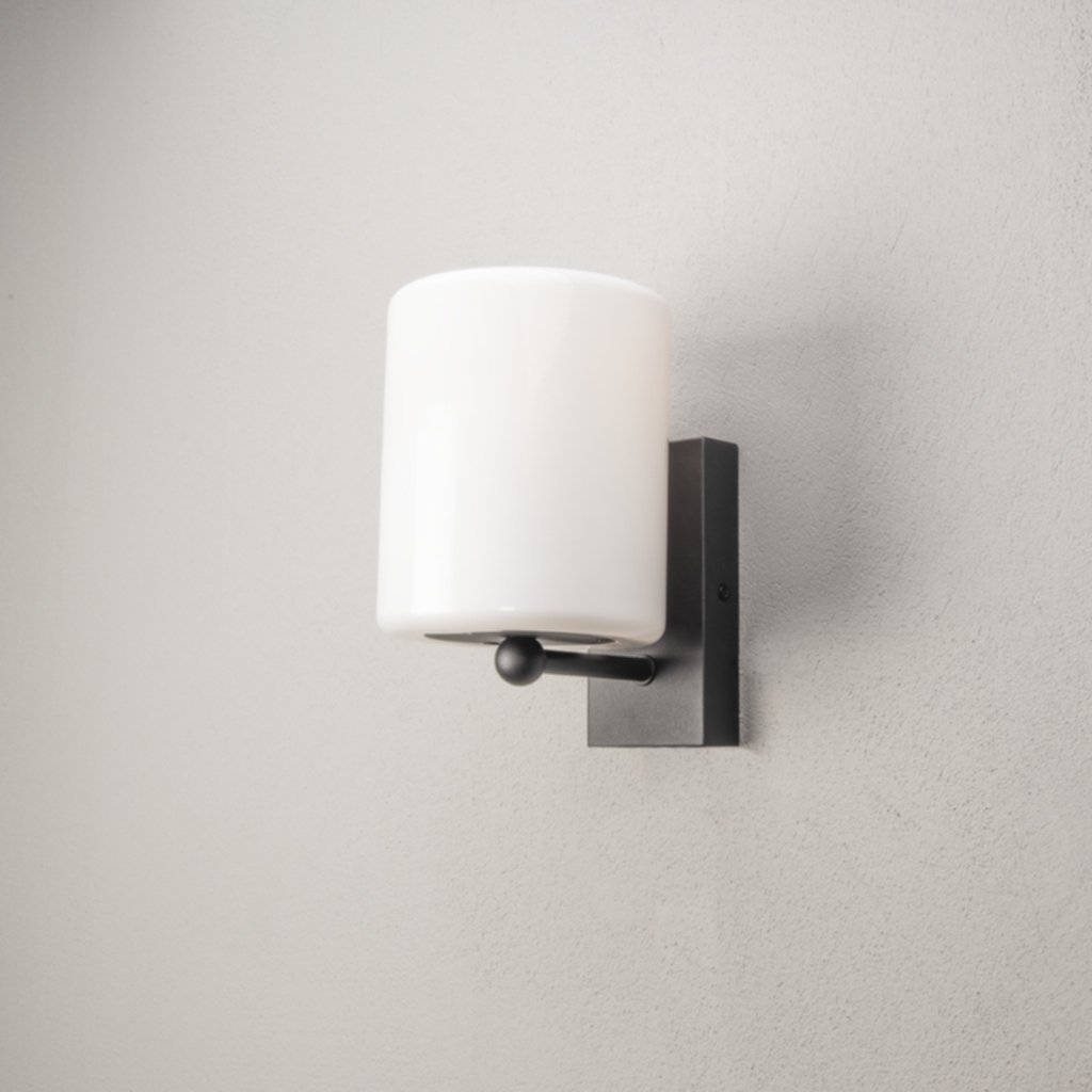 Portici Vägglampa Svart E27 Glöd Opalt plastglas