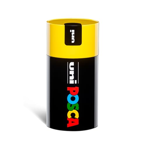 Posca - UniPosca komplett set med 18 blandade akrylmarkörer, 2,5 mm medium spets - färger för barn och konstnärer Posca som är lämpliga som tygfärger, trä och mer, i gul presentask
