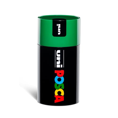 Posca - UniPosca komplett set med 18 blandade akrylmarkörer, 2,5 mm medium spets - färger för barn och konstnärer Posca som är lämpliga som tygfärger, trä och mer, i grön presentförpackning