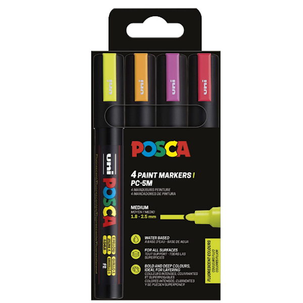 UNI Posca Set PC 5M Fluor - Pack 4 pennor