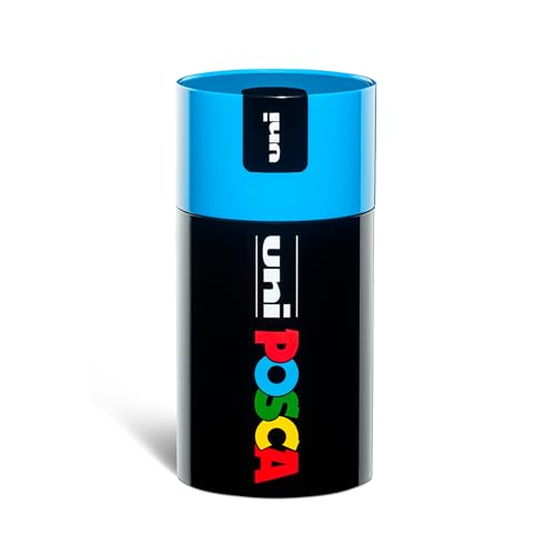 Posca - UniPosca komplett set med 18 blandade akrylmarkörer, 2,5 mm medium spets - färger för barn och konstnärer Posca som är lämpliga som tygfärger, trä och mer, i ljusblå presentförpackning