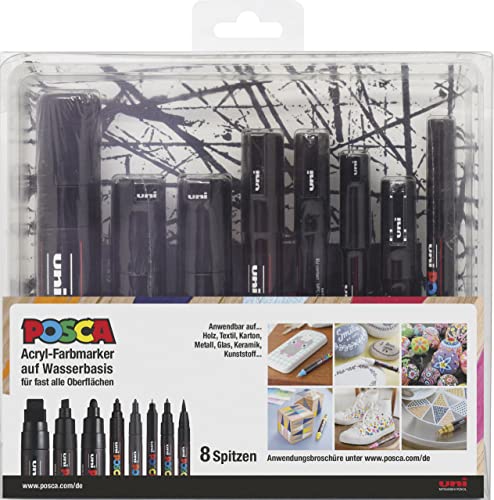 uni-ball 186804 – POSCA märkpenna spetsset, svart, set om 8 med alla toppvarianter