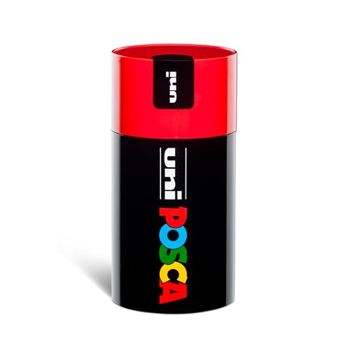 Posca - UniPosca komplett set med 18 blandade akrylmarkörer, 2,5 mm medium spets - färger för barn och konstnärer i Posca som är lämpliga som tygfärger, trä och mer, i presentförpackning röd