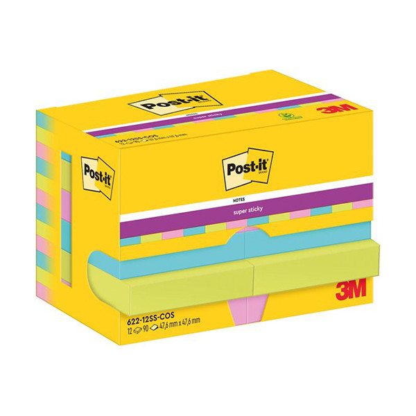Post-it lappar 47,6mm x 47,6mm | 3M | supersticky blandade färger| 90 ark | 12st